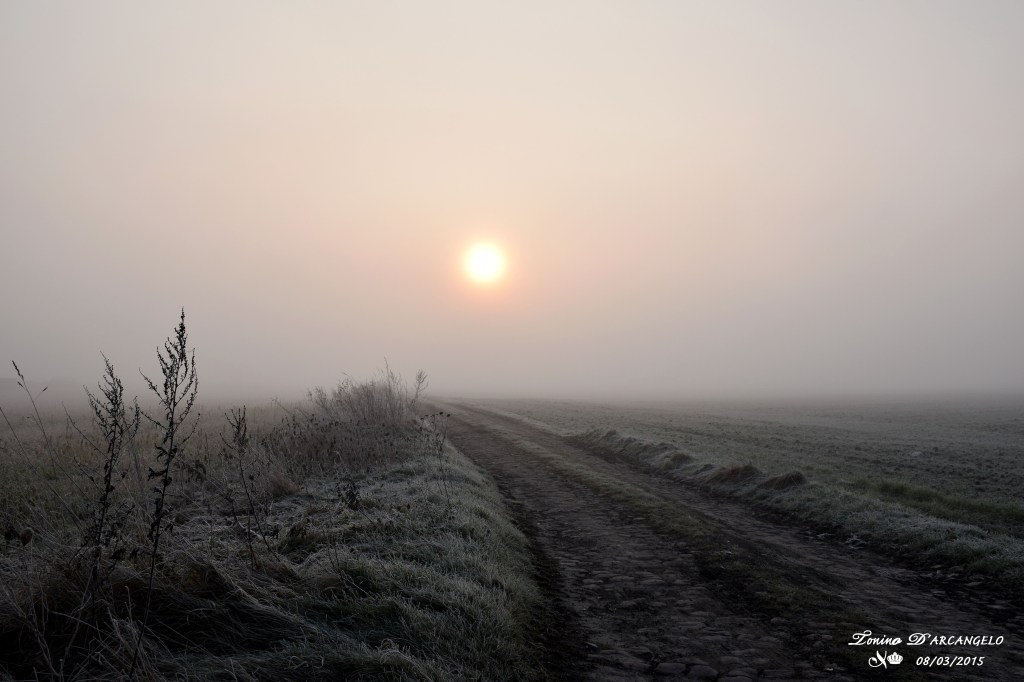 Enveloppée de sa brume matinale La lumière semble soyeuse Comme transperçant une écume glaciale De son trait nébuleux, elle scintille et semble chaleureuse