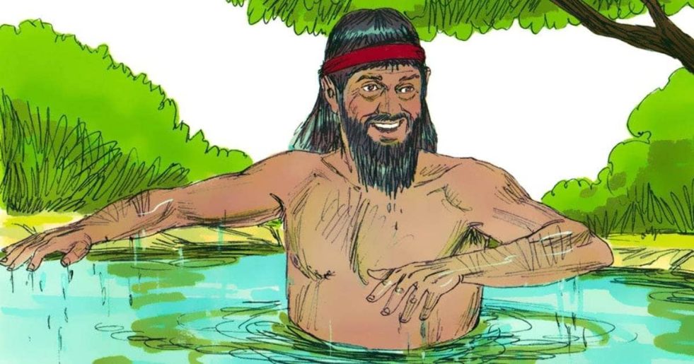 — Va à la rivière, le Jourdain, entre dans l’eau et lave-toi sept fois ; ta peau redeviendra saine, et tu seras guéri.
