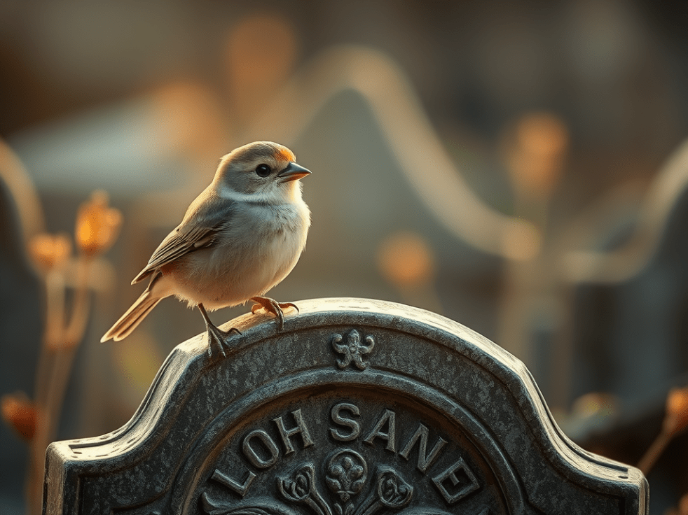Dialogue entre un petit oiseau (2) et la pierre roulée du tombeau (1).